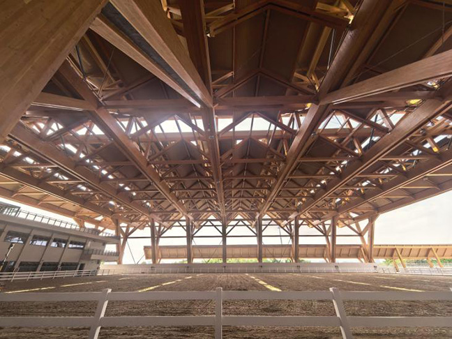 作為國內(nèi)領(lǐng)先的木結(jié)構(gòu)設(shè)計(jì)公司,蘇州昆侖綠建在光明國際馬術(shù)中心項(xiàng)目中,充分發(fā)揮了木結(jié)構(gòu)的環(huán)保、可持續(xù)性等價(jià)值。